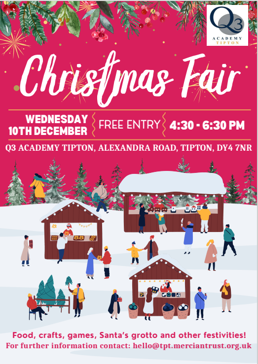 Wednesday 10th December 4.30-6.30pm Q3 Academy Tipton, Alexandra Road, Tipton, DY4 7NR Food, crafts, games, Santa's grotto and other festivities! […]